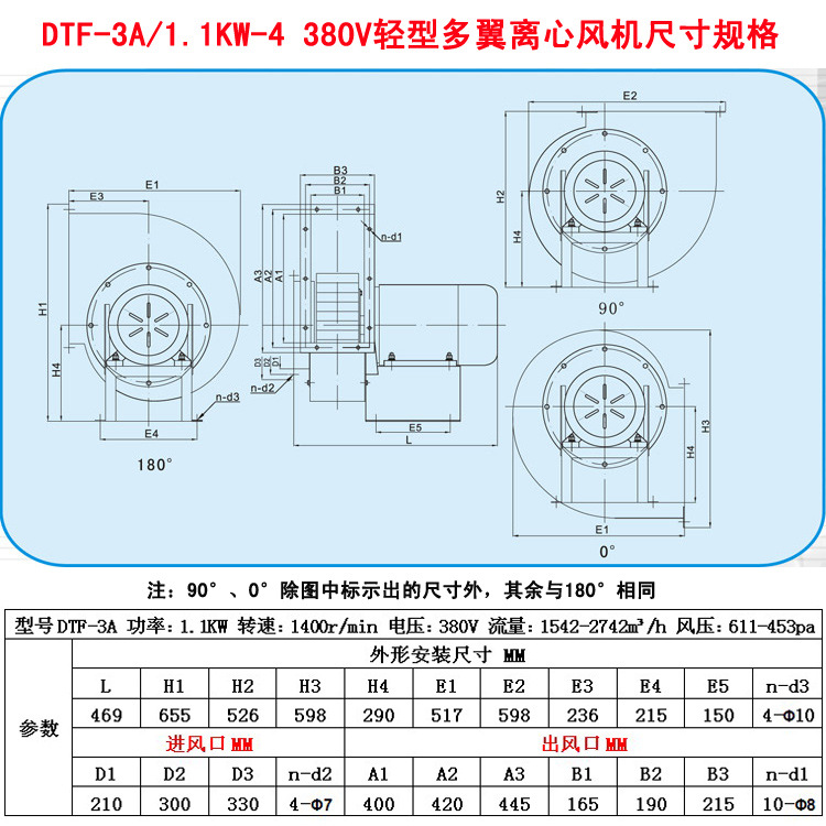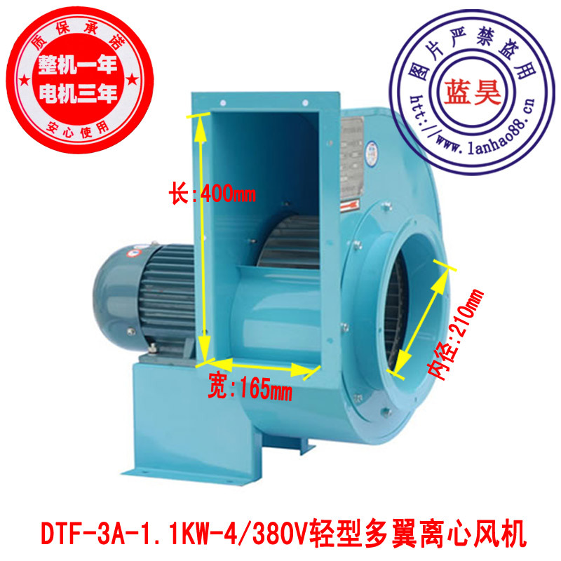 德通牌DTF-3A/1.1KW-4/380V轻型多翼离心风机是德通公司新开发的转化为净化、环保行业及各种专用设备配套所开发的一种高静压、低噪声、体积小的多翼离心风机,德通牌DTF-3A/1.1KW-4/380V轻型多翼离心风机参数实测,拒绝虚假!德通牌DTF-3A/1.1KW-4/380V轻型多翼离心风机通过国家能效标签的认证,品质保证:整机保一年!