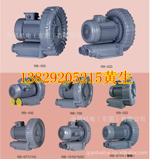 RB环形高压鼓风机:共14个型号,功率最小的200W,最大的15千瓦。