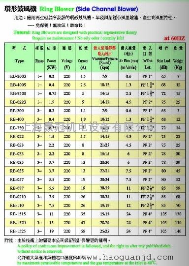 4、直叶式鼓风机型号如下:PF-75 PF-100LPF-125LPF1502 PF-1503 PF-2005 PF-125全风风机,台湾全风风机,环形风机