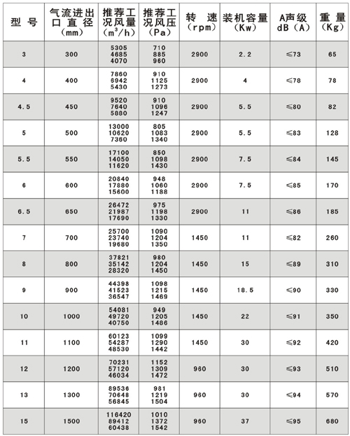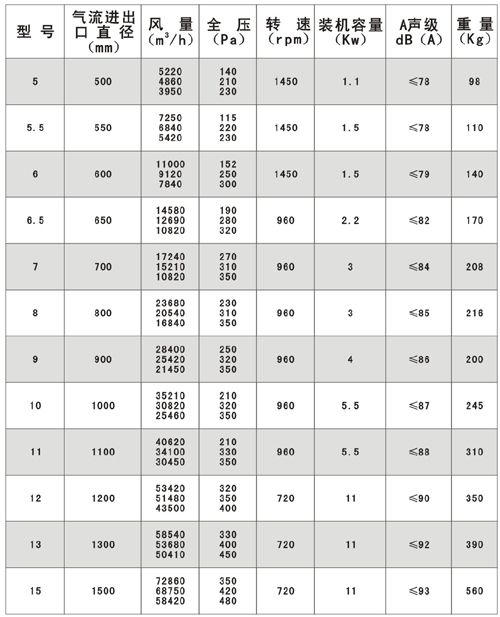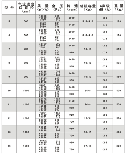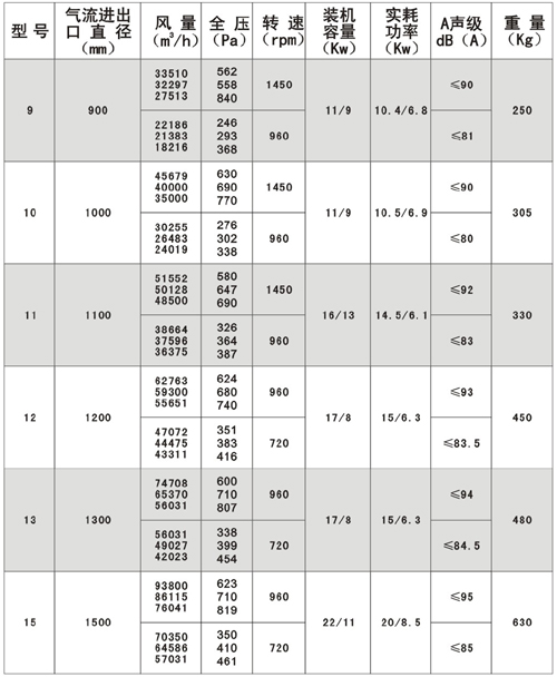 十.HTF(GYF)-IG型混流式消防高温排烟轴流通风机性能参数表