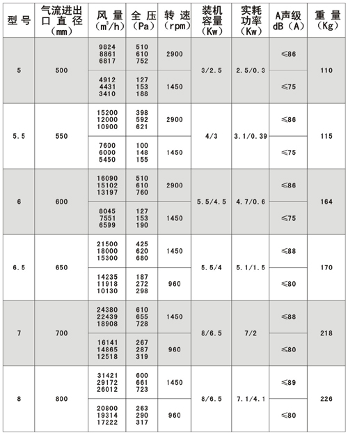 八.HTF(GYF)-D型低速压型消防高温排烟轴流通风机性能参数表