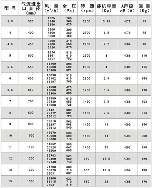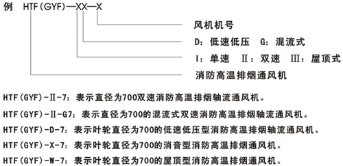 二.HTF(GYF)系列消防高温排烟轴流通风机性能的选择和型号说明